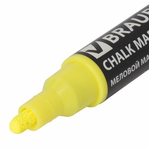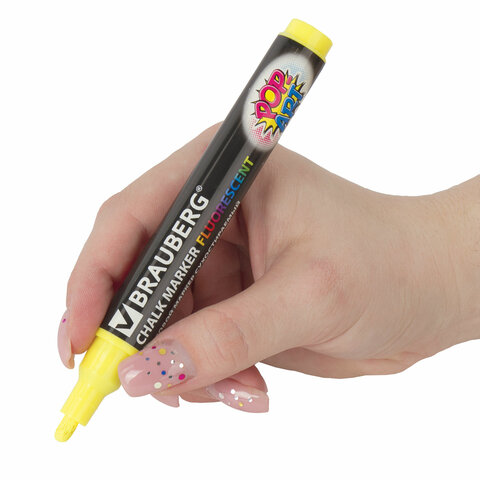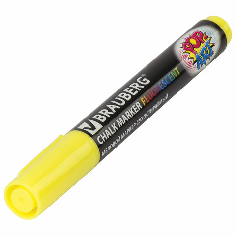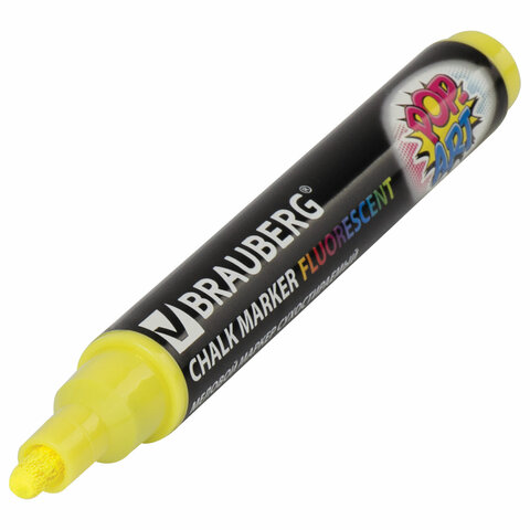 Маркер меловой "POP-ART" ЖЕЛТЫЙ, 5 мм, стираемый, для гладких поверхностей, BRAUBERG, 151528