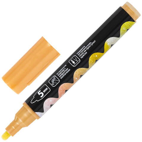 Маркер меловой "POP-ART" ЗОЛОТОЙ, 5 мм, ВЛАГОСТИРАЕМЫЙ, для гладких поверхностей, BRAUBERG, 152485