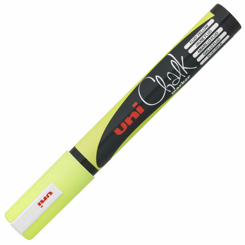 Маркер меловой UNI Chalk, 1,8-2,5 мм, ЖЕЛТЫЙ, влагостираемый, для гладких поверхностей, PWE-5MF.YELLOW, PWE-5M F.YELLOW
