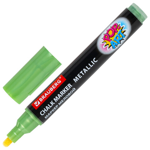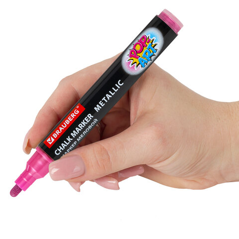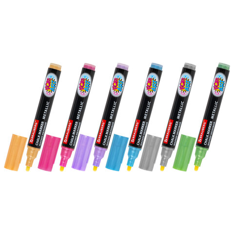 Маркеры меловые "POP-ART", НАБОР 6 ЦВЕТОВ МЕТАЛЛИК, 5 мм, ВЛАГОСТИРАЕМЫЕ, BRAUBERG, 152487
