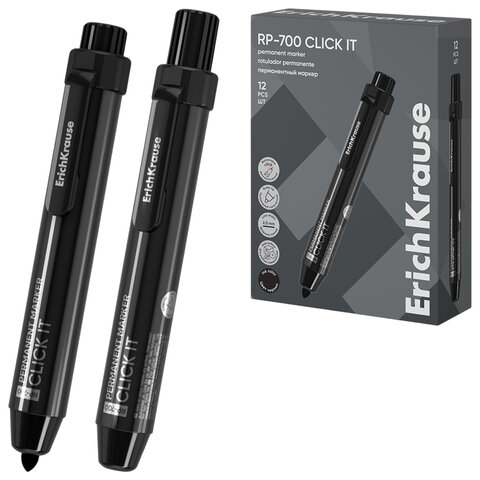 Маркер перманентный автоматический ERICH KRAUSE RP-700 "Click it", ЧЕРНЫЙ, 2 мм, 60828