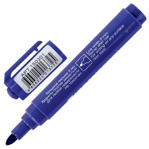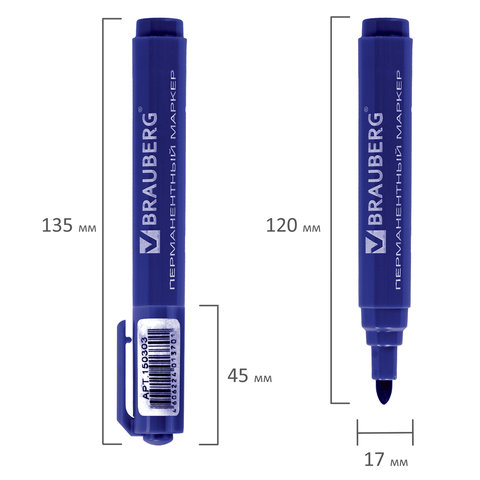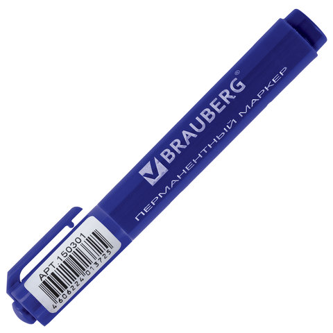 Маркер перманентный BRAUBERG "Classic", СИНИЙ, круглый наконечник, 3 мм, с клипом, 150301