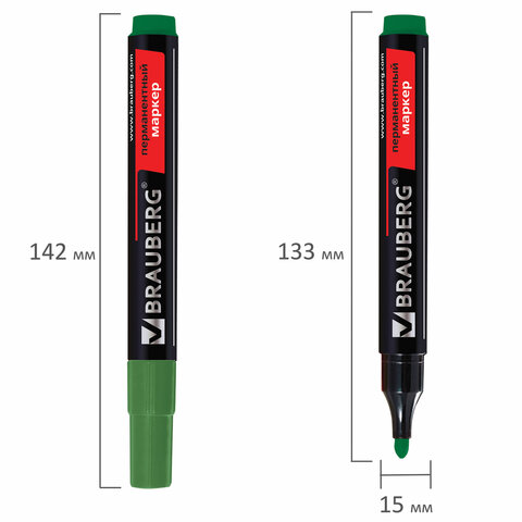 Маркер перманентный BRAUBERG "Contract", ЗЕЛЕНЫЙ, круглый наконечник, 3 мм, 150468