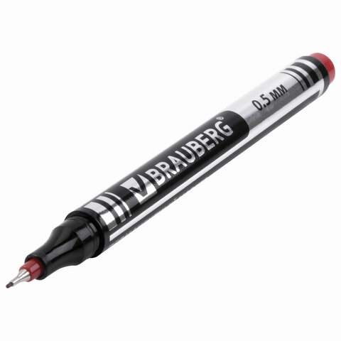 Маркер перманентный BRAUBERG "Jet", КРАСНЫЙ, супертонкий металлический наконечник 0,5 мм, 150509