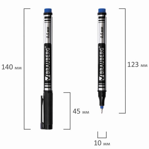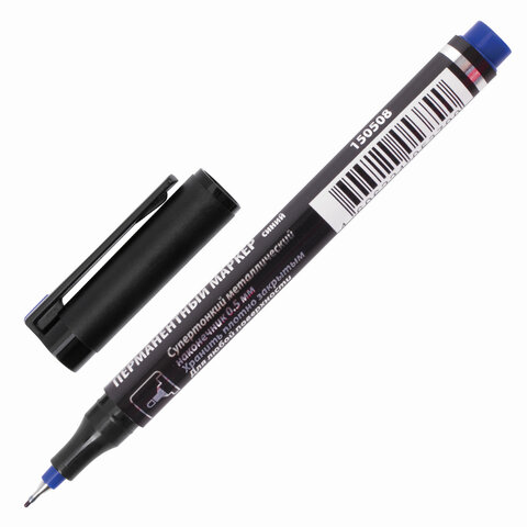 Маркер перманентный BRAUBERG "Jet", СИНИЙ, супертонкий металлический наконечник 0,5 мм, 150508