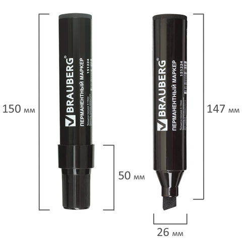 Маркер перманентный BRAUBERG "JUMBO", ЧЕРНЫЙ, ШИРОКАЯ ЛИНИЯ ПИСЬМА, скошенный наконечник, 3-10 мм, 151224