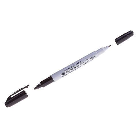 Маркер перманентный CROWN двусторонний "Multi Marker Twin", ЧЕРНЫЙ, круглый, 2 мм / 1 мм, P-800W