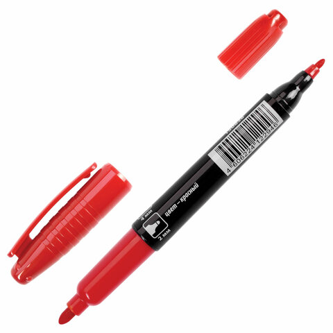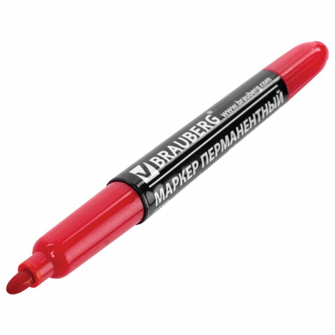 Маркер перманентный двусторонний BRAUBERG, КРАСНЫЙ, круглый наконечник 2/4 мм, 150838