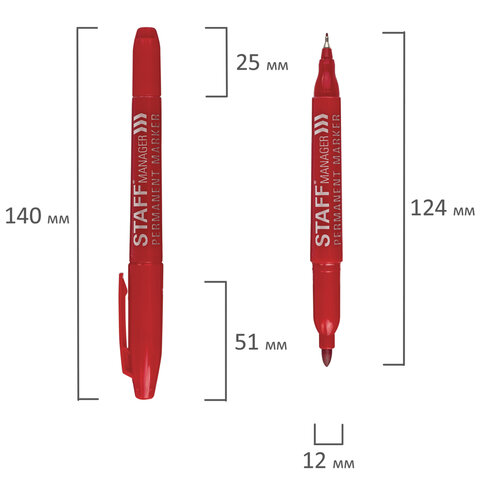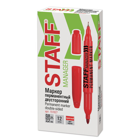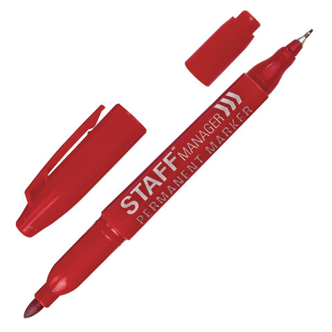 Маркер перманентный двусторонний STAFF "Manager" PM-625, КРАСНЫЙ, наконечники 0,8 мм/2,2 мм, 151627