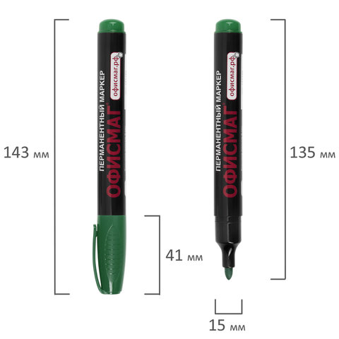 Маркер перманентный ОФИСМАГ, ЗЕЛЕНЫЙ, круглый наконечник, 3 мм, с клипом, 151200