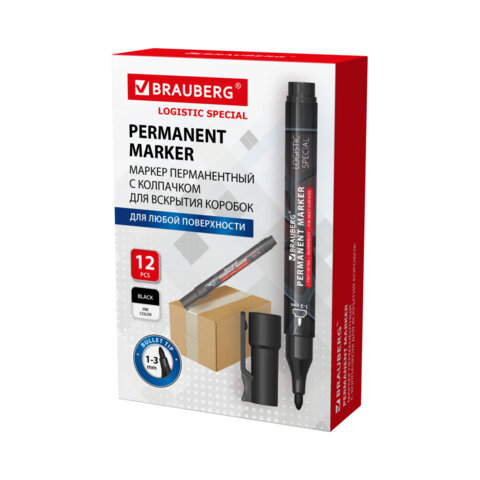 Маркер перманентный с колпачком для вскрытия коробок BRAUBERG LOGISTIC SPECIAL, черный, 1-3 мм, 152569
