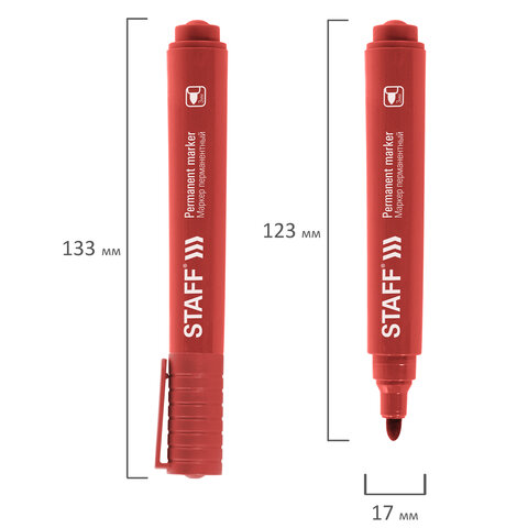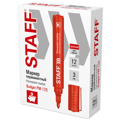 Маркер перманентный STAFF "Basic Budget PM-125", КРАСНЫЙ, круглый наконечник 3 мм, 152176