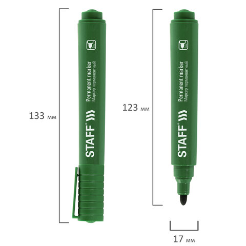 Маркер перманентный STAFF "Basic Budget PM-125", ЗЕЛЕНЫЙ, круглый наконечник 3 мм, 152177
