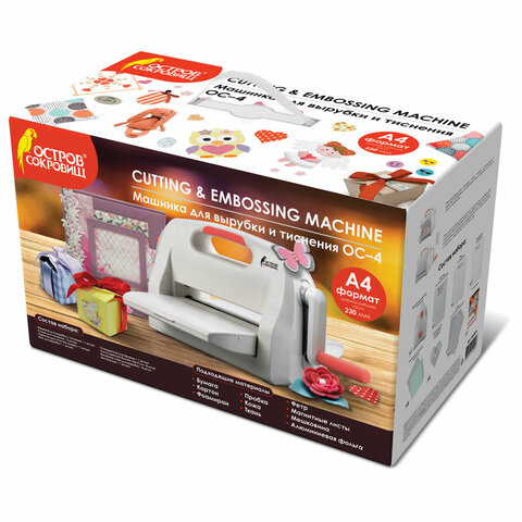 Машинка для вырубки и тиснения с набором инструментов ОСТРОВ СОКРОВИЩ сочетает в себе удобство использования, возможность работы с различными материалами (бумага, картон, ткань, фетр, фоамиран, кожа, фольга), а также надежность и долговечность.