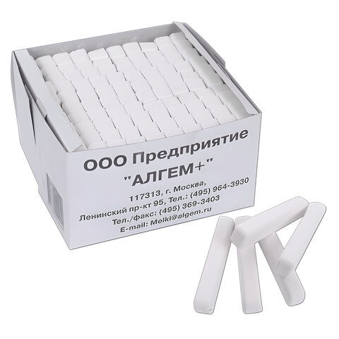 Мел белый квадратный 100 штук, АЛГЕМ, картонная упаковка, 00041, МШБ 100