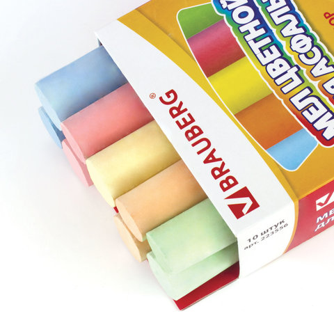 Цветной мел BRAUBERG предназначен для письма и рисования на асфальте.