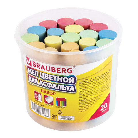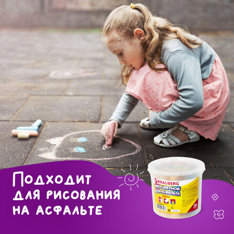 Цветной мел BRAUBERG предназначен для письма и рисования на асфальте.