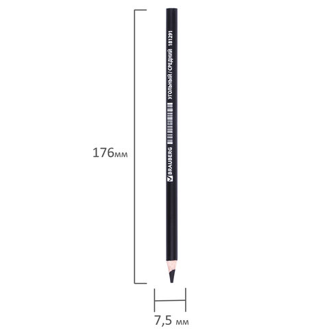 Карандаш (1 штука) угольный BRAUBERG ART CLASSIC, СРЕДНИЙ, круглый, корпус черный, заточенный, 181291