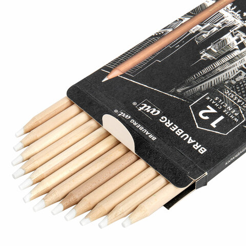 Карандаши МЕЛОВЫЕ художественные белые, НАБОР 12 шт., BRAUBERG ART CLASSIC, грифель 4 мм, 181897
