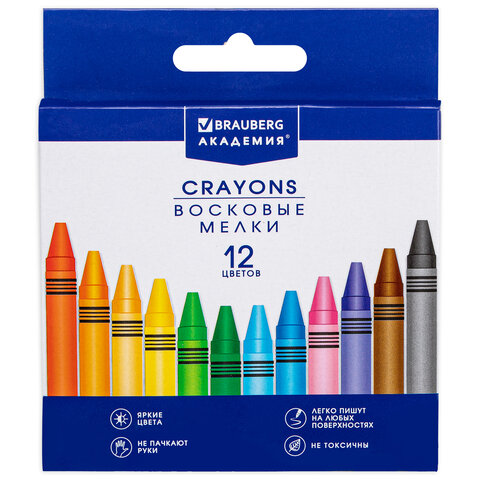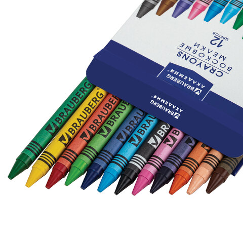 Восковые мелки BRAUBERG "АКАДЕМИЯ", НАБОР 12 цветов, 227283