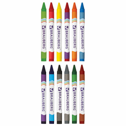 Восковые мелки BRAUBERG, НАБОР 12 цветов, 222962