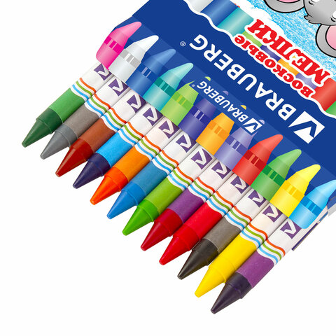 Восковые мелки BRAUBERG идеально подходят для детского творчества. Предназначены для рисования на бумаге любого типа, а также дереве, картоне и стекле. Не пачкают руки, благодаря индивидуальной бумажной обертке каждого карандаша.