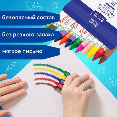 Восковые мелки BRAUBERG идеально подходят для детского творчества. Предназначены для рисования на бумаге любого типа, а также дереве, картоне и стекле. Не пачкают руки, благодаря индивидуальной бумажной обертке каждого мелка.