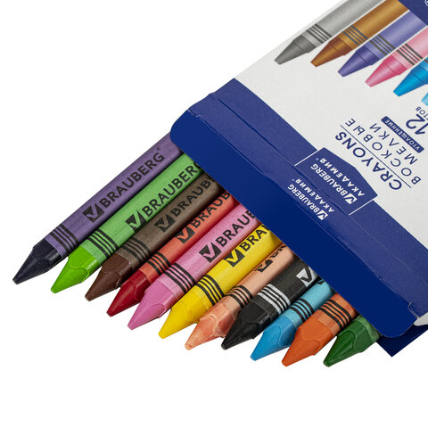 Восковые мелки трехгранные утолщенные BRAUBERG "АКАДЕМИЯ", НАБОР 12 цветов, 227287