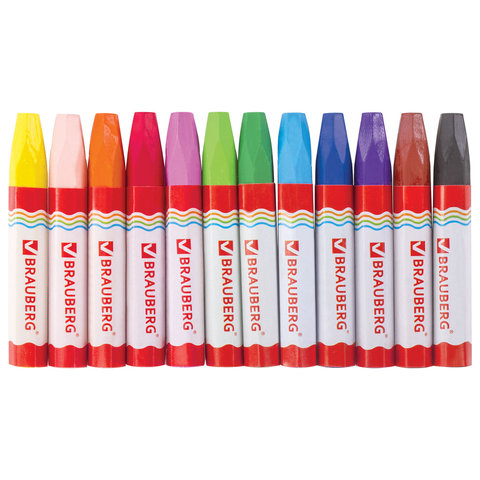 Восковые мелки утолщенные BRAUBERG "АКАДЕМИЯ", НАБОР 12 цветов, на масляной основе, яркие цвета, 227295