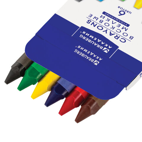 Восковые мелки трехгранные утолщенные BRAUBERG "АКАДЕМИЯ", НАБОР 6 цветов, 227286