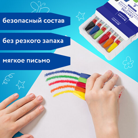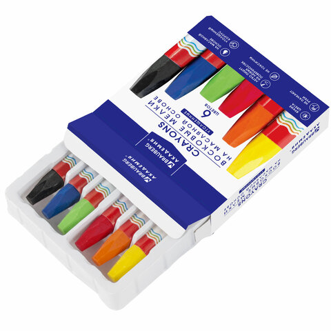 Восковые мелки утолщенные BRAUBERG "АКАДЕМИЯ", НАБОР 6 цветов, на масляной основе, яркие цвета, 227294