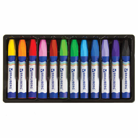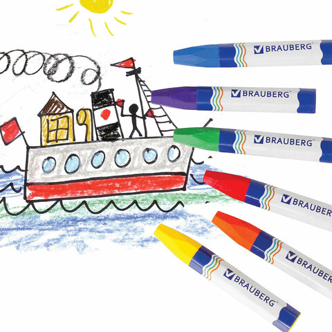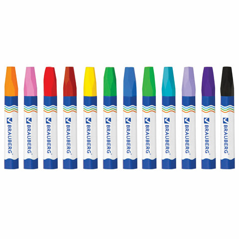 Восковые мелки утолщенные BRAUBERG, НАБОР 12 цветов, на масляной основе, яркие цвета, 222970