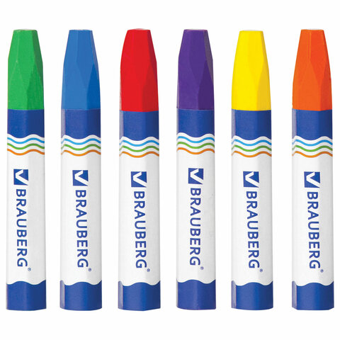 Восковые мелки утолщенные BRAUBERG, НАБОР 6 цветов, на масляной основе, яркие цвета, 222969