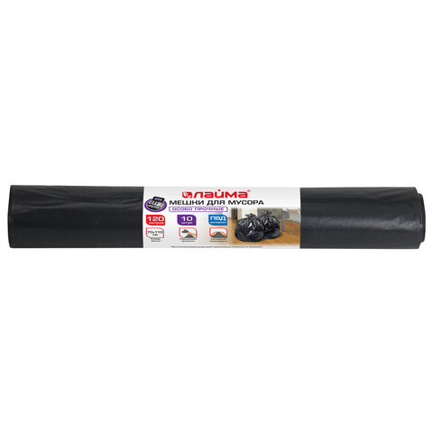 Мешки для мусора 120 л, черные, в рулоне 10 шт., особо прочные, ПВД 40 мкм, 70х110 см, LAIMA, 605341