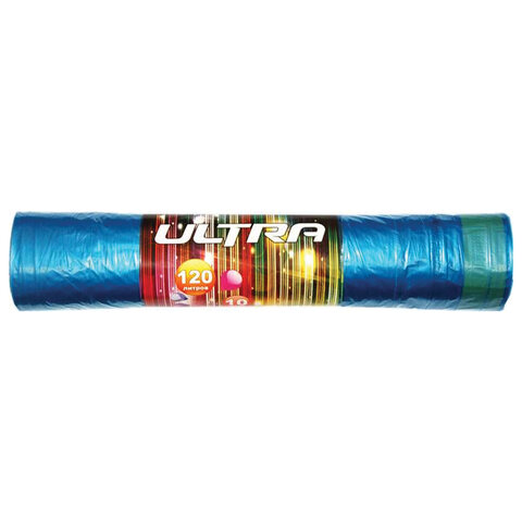 Мешки для мусора 120 л, с завязками, синие, в рулоне 10 шт., ПВД, 30 мкм, 70х110 см, КБ, "Ultra", 1725