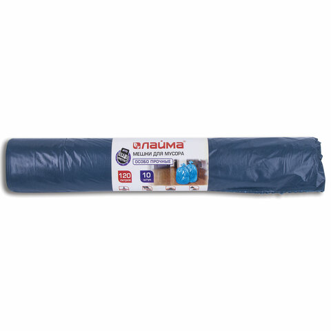 Мешки для мусора 120 л, синие, в рулоне 10 шт., особо прочные, ПВД 40 мкм, 70х110 см, LAIMA, 601387
