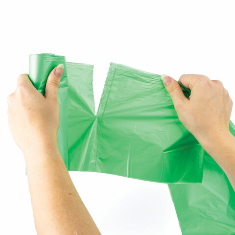 Мешки для мусора биоразлагаемые 35 л, зеленые, рулон 20 шт., ПНД 11 мкм, 50х60 см, ЛЮБАША, 608098