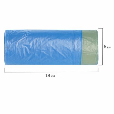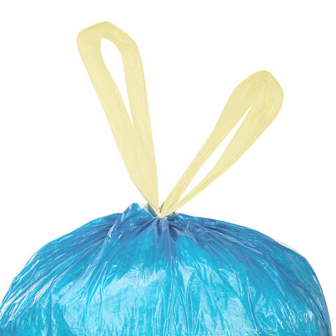 Мешки для мусора с завязками 60 л, синие, в рулоне 20 шт., прочные, ПНД 14 мкм, 55х62 см, LAIMA, 601397
