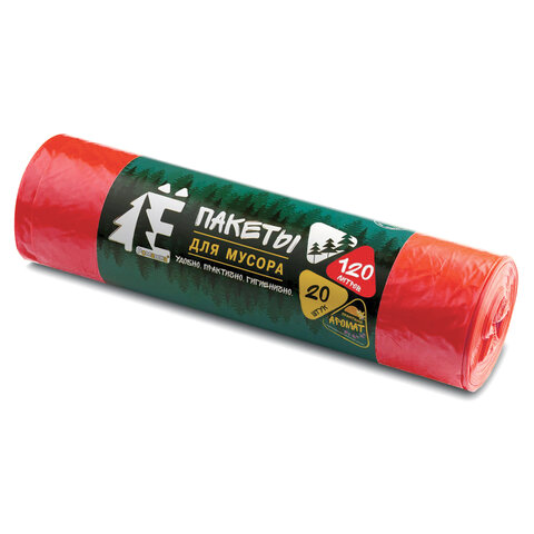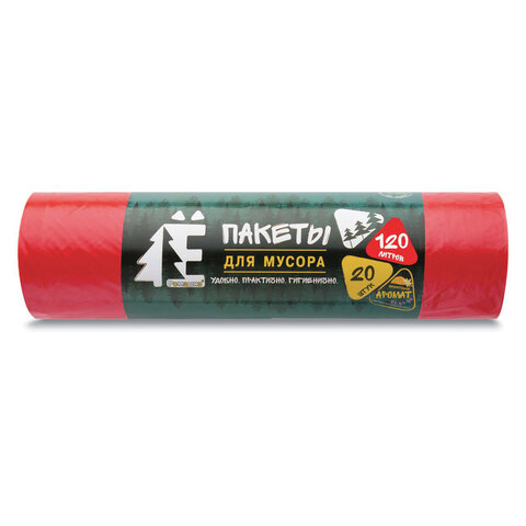 Мешки для раздельного сбора мусора 120 л, красные, в рулоне 20 шт., ПВД 20 мкм, 70х110 см, РОМАШКА, ЕЛР-ВР-120К