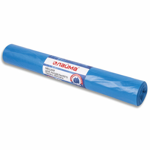 Мешки для раздельного сбора мусора 120 л синие в рулоне 10 шт., ПВД 38 мкм, 70х108 см, LAIMA, 606707, 3866