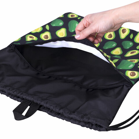 Мешок для обуви BRAUBERG БОЛЬШОЙ, с ручкой, карман на молнии, сетка, 49х41 см, "Avocado", 271058
