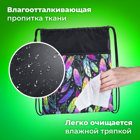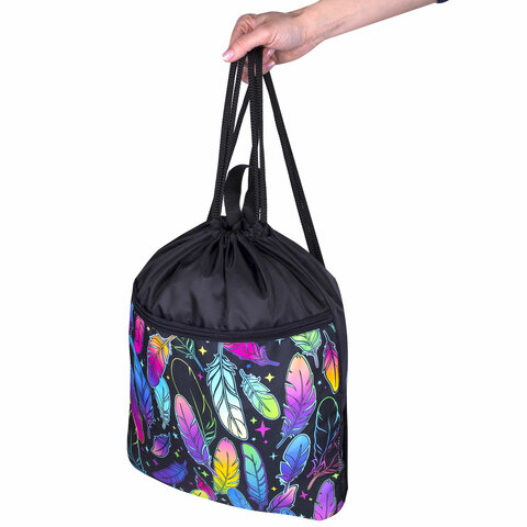Мешок для обуви BRAUBERG БОЛЬШОЙ, с ручкой, карман на молнии, сетка, 49х41 см, "Feathers", 271057