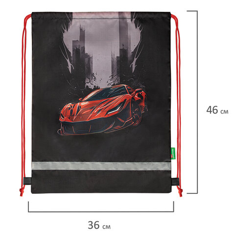 Мешок для обуви BRAUBERG KIDS, светоотражающая полоса, 46х36 см, "Red car", 272392