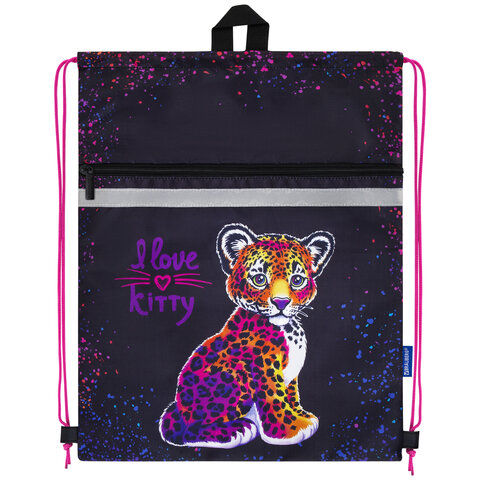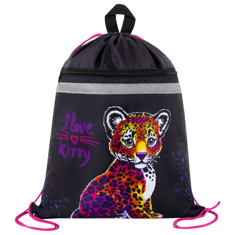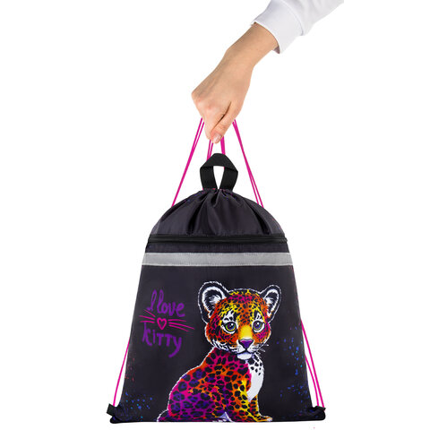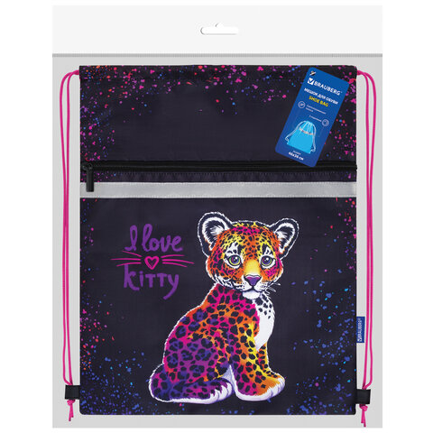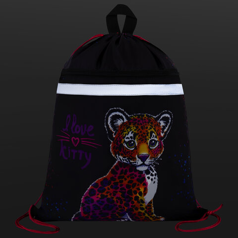 Мешок для обуви BRAUBERG, с петлей, светоотражающая полоса, 2 отделения, 46х36 см, Leopard, 272395