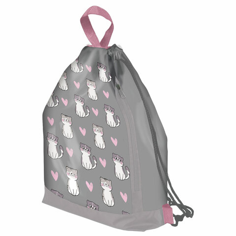 Мешок для обуви ЮНЛАНДИЯ с ручками, боковой карман на молнии, 46х36 см, "Kitties", 272407