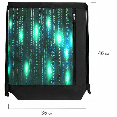 Мешок для обуви ЮНЛАНДИЯ, с ручками, боковой карман на молнии, 46х36 см, "Matrix", 271068