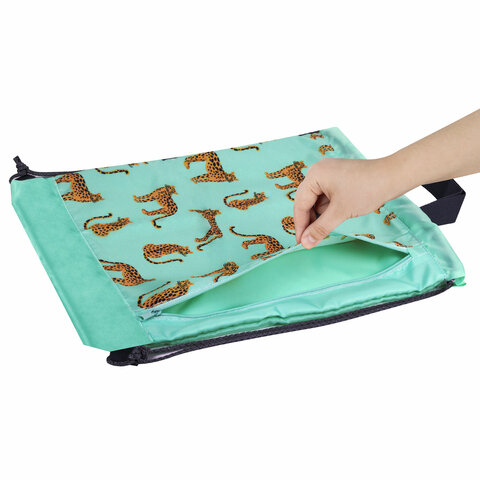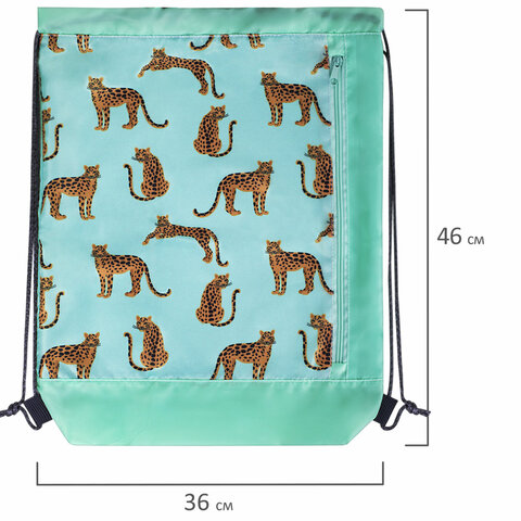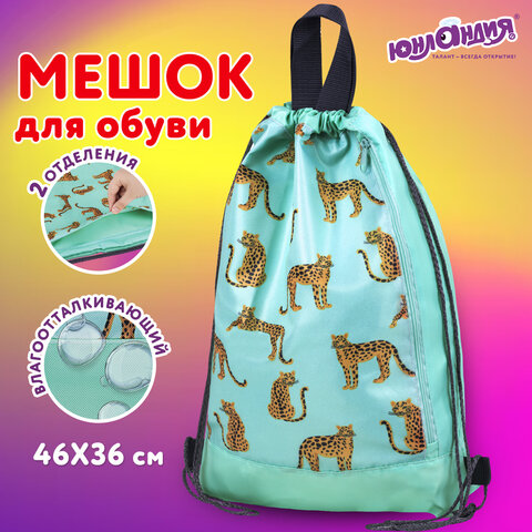 Мешок для обуви ЮНЛАНДИЯ, с ручками, боковой карман на молнии, 46х36 см, "Wild Cats", 271614