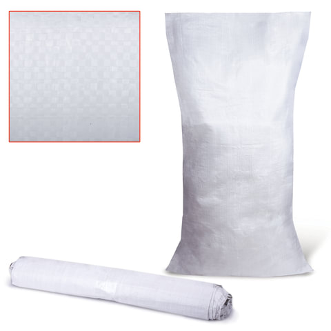 Мешки полипропиленовые до 50 кг, комплект 10 шт., 105х55 см, вес 72 г, без вкладыша, белые, 601139