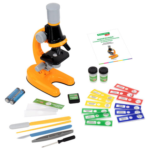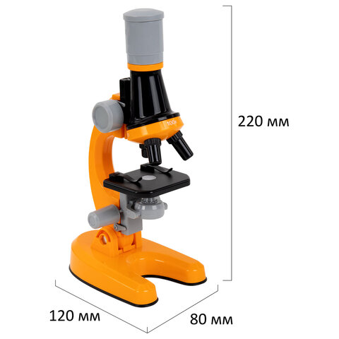 Микроскоп с подсветкой, 30 предметов, в т.ч. набор из 12 микропрепаратов в подарок, увеличение 100х, 400х, 1200х, BRAUBERG KIDS, 391400
