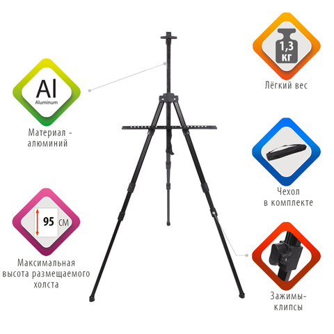 Мольберт алюминиевый BRAUBERG ART CLASSIC, УСИЛЕННЫЙ, тренога, переносной, разлож. 98x180x91, 191281
